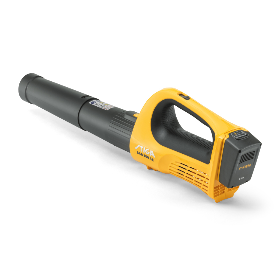 - Cordless – for cable-free, quieter leaf blowing – Featuring a 20V 4Ah battery, the SAB 100 is powerful and quieter than a petrol leaf blower, delivering working times of 30 minutes at normal speed and 40 minutes at boosted speed.