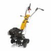 Rotary tiller with 125 cc spark ignition motor, 50 cm operating width, 20 cm operating depth, four metallic rotors and two rear wheels.