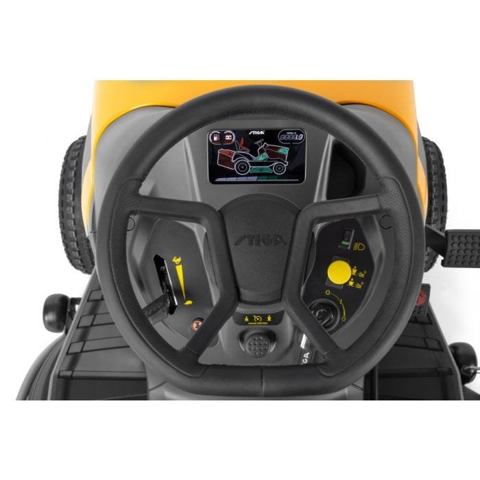 Total comfort Thanks to a STIGA Premium soft-grip steering wheel, an ergonomic Comfort Plus seat with armrests and the cruise control function, you’ll enjoy the superior driver comfort that’s essential for anyone regularly managing time-consuming mowing jobs. A roomy storage compartment and a handy 12 V socket are also featured.