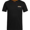 This classic black unisex t-shirt features two crossed axes on the back against a Stihl orange background.
